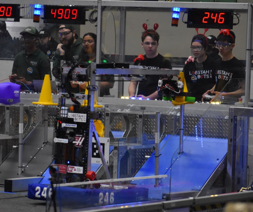 Two weeks ago the Lobstah Bots traveled to Springfield to compete in the FIRST® New England District Championships. Though we were placed in the hardest division and given a tough set of matches, we were able to finish 24th out of the 45 teams. While we did not get selected for the playoffs, the team still enjoyed an amazing time during qualifications and watching the intense elimination and finals matches.